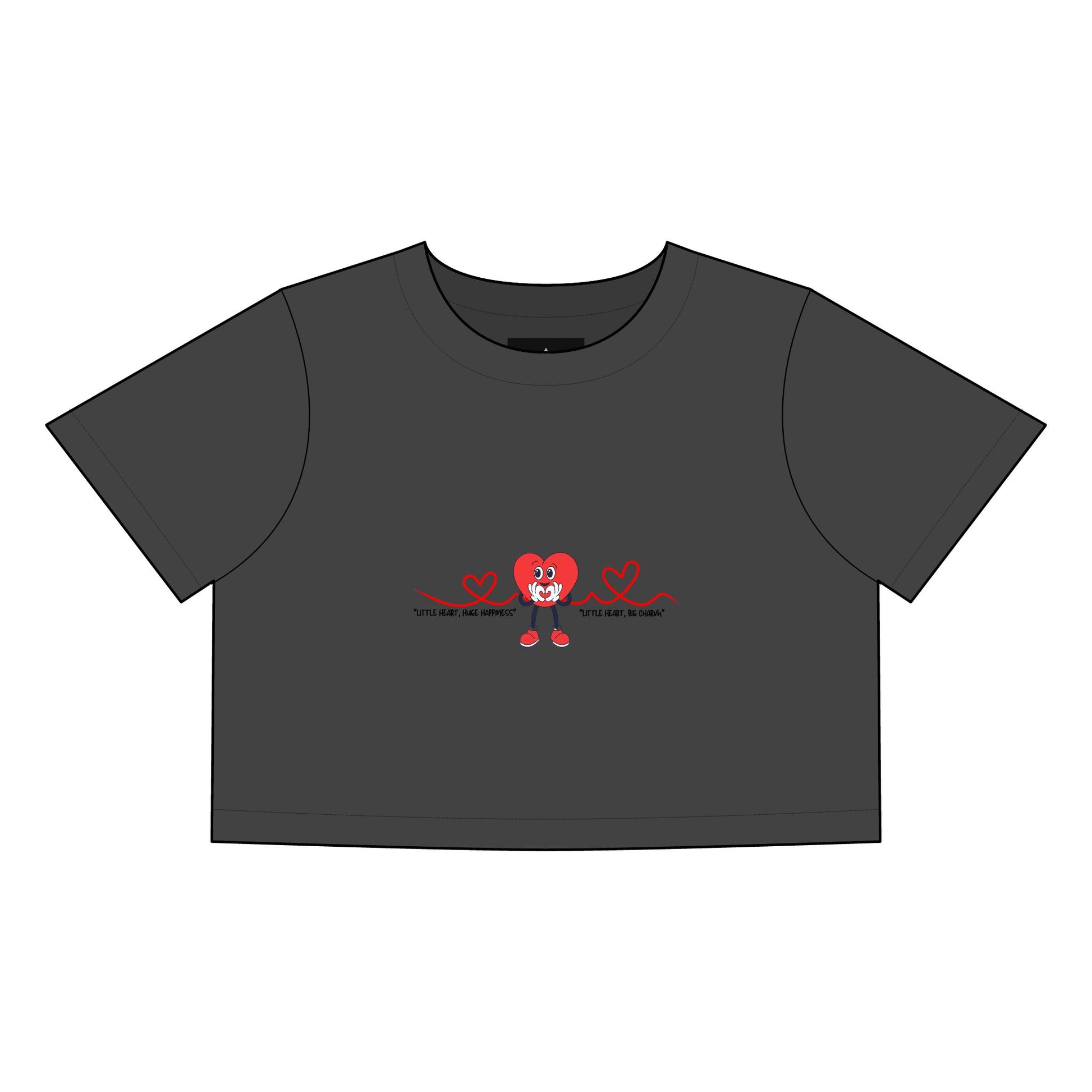 This adorable Crop Tee features a cute small heart character and two loving/charming quotes, giving off a positive and loving vibe. Perfect for casual wear and lounging around, this Crop Tee is relevant for holidays like Valentine's Day and occasions celebrating love and friendship. Target audience includes women who appreciate high-quality, unique designs.