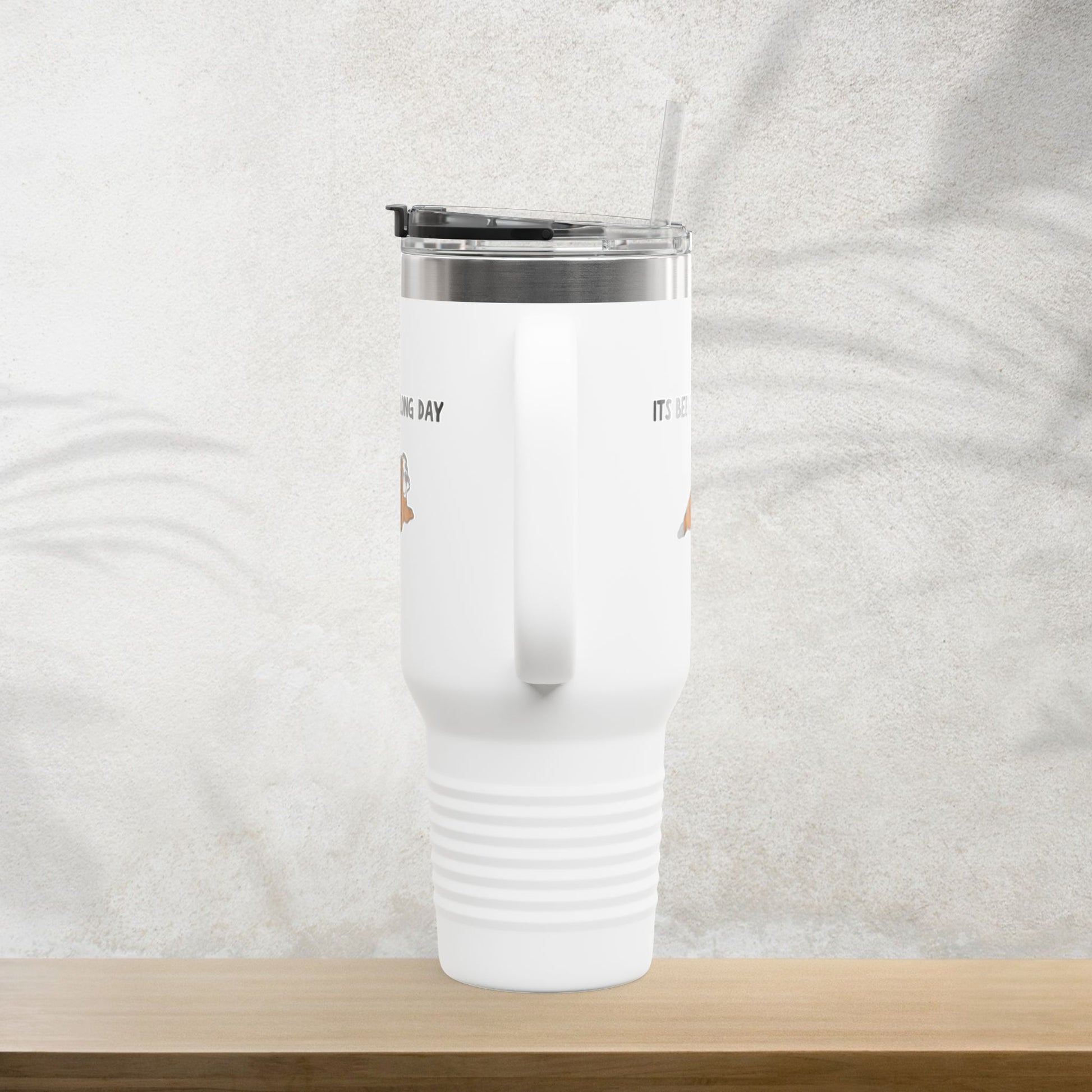 Unwind after a hectic day with this adorable dog-themed 40oz Travel Mug, perfect for dog lovers, busy professionals, or anyone who needs a humorous reminder to take it easy. The high-capacity insulated mug keeps beverages hot or cold for hours on the go, adding a touch of whimsy to your daily routine. Ideal for commuting, hiking, or just lounging, this mug is dishwasher-safe for long-lasting use. A great gift for birthdays, holidays, or self-care treats.